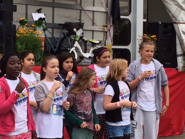 Der WFS-Schulchor tritt mit den Liedern "Klasse wir singen!" und "I like the flowers" auf dem Rather Sommerfest auf.