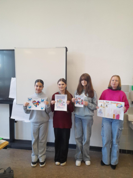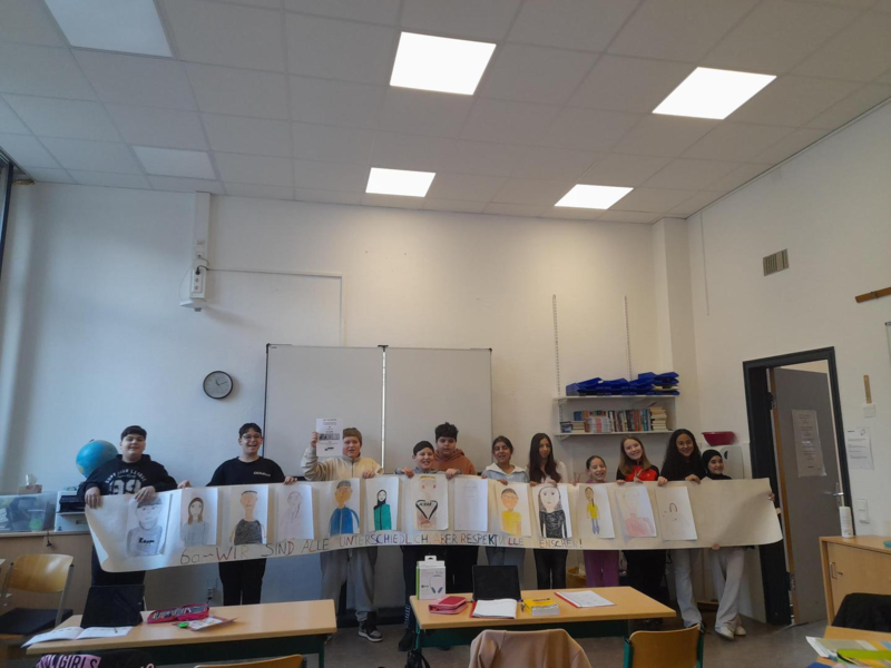 Am Aktionstag "Schule ohne Rassismus – Schule mit Courage" hat die Klasse 8b eigene Elfchen und Gedichte verfasst. Diese Texte wurden zusätzlich durch selbst gestaltete Zeichnungen ergänzt, um ihre Botschaft noch eindrucksvoller zu machen. Zum Abschluss haben die Schülerinnen und Schüler ihre Werke der Klasse vorgetragen und so ihre kreative Auseinandersetzung mit dem Thema präsentiert.